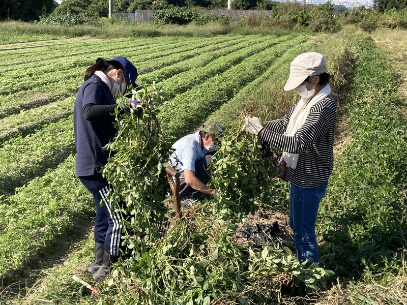 作業は、こどもピーマンの収穫、落花生の収穫、えんどう豆の種まきなど、