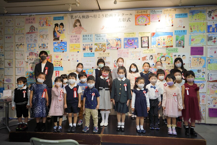 検診を受診されない理由には「忙しい」「どこで受診できるかわからない」というのに加え「自分が乳がんになるとは思えない」「自覚症状がないので必要性を感じない」というのが多く、 本来乳がんは早期発見で90%以上の生存率で予後もよいはずの病にもかかわらず、検診受診の低さゆえに早期発見のチャンスを逸しています。乳がん罹患ピークの女性たちは仕事や子育てで忙しい世代でもあり、自分のことは後回しにしてしまう場合も少なくありません。そのような女性たちだからこそ「今家族を残しては死ぬわ けにはいかない」という思いに、受診契機へとつながる糸口があると考え、当協会では毎年秋に絵画コンクールを行っています。この絵画コンクールを通して、多くの方に少しでも乳がんに関する知識や取り組み、乳がん検診の大切さなどを意識づけできるように。子どもと大人、誰もが参加できるように、楽しめるように。そして乳がん検診受診率の向上へ繋がるように。子どもたちの熱い想いのこもった作品を是非一緒に広めていただければと思います。
