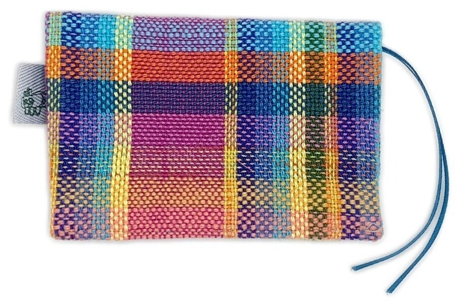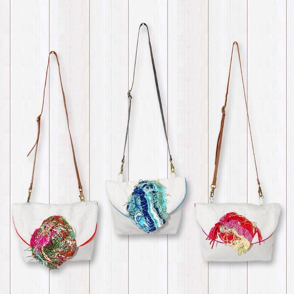 メンバーが好きな言葉や形を切り抜いた手漉きの紙に、織り布をはさんでカード