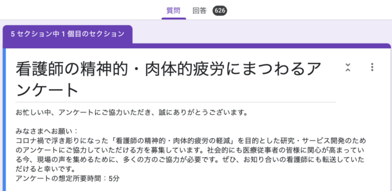 看護師の精神的・肉体的疲労にまつわるアンケートを実施し、4日で600名以上の回答をいただきました。