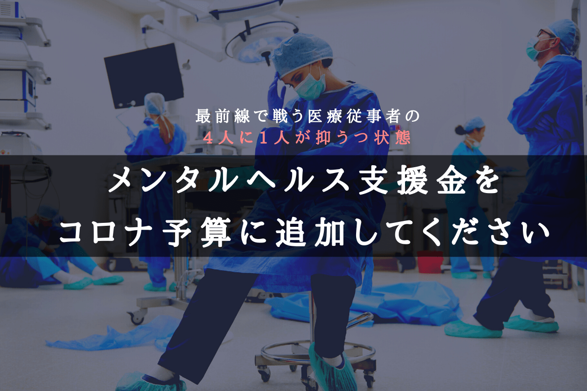 弊社COO氏家が令和3年度厚生労働省予算に医療従事者のメンタルヘルス支援金の追加を求める署名活動を始めました。新型コロナウイルスに対応した医療従事者に慰労金を配布するだけでなく、医療従事者の精神的/肉体的な疲労軽減に向けたサポートが必要です。