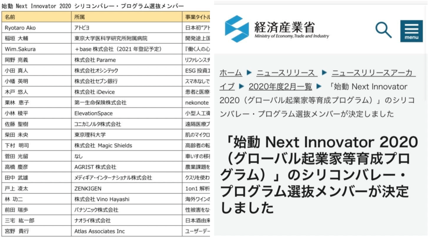 +base inc.が経済産業省主催の「始動 Next Innovator 2020(グローバル起業家等育成プログラム)」に採択され、行政の協力のもと、シリコンバレーの投資家や起業家に、事業プランをプレゼンすることが決定いたしました。