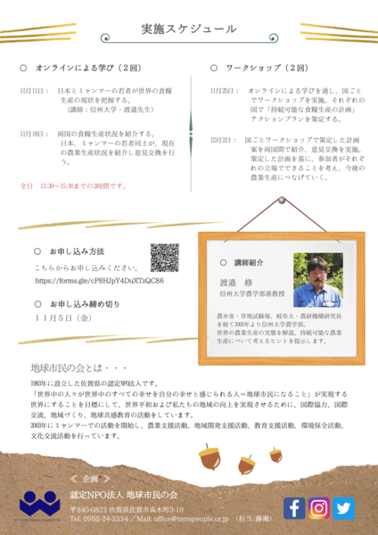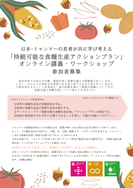 - 日本とミャンマーが共に学び考える 「持続可能な食糧生産アクションプラン」WS