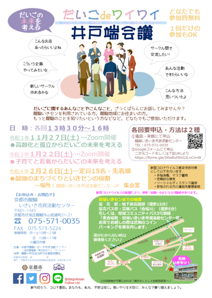 11/27及び1/22はオンライン(zoom)で開催。2/26は醍醐いきセン集会室にて開催予定。 |