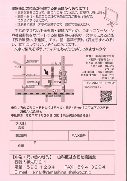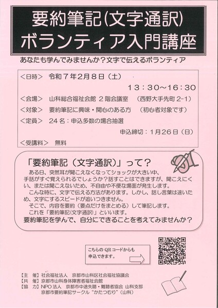 初心者向けの講座です。要約筆記に興味・関心のある方はぜひお申込みください。