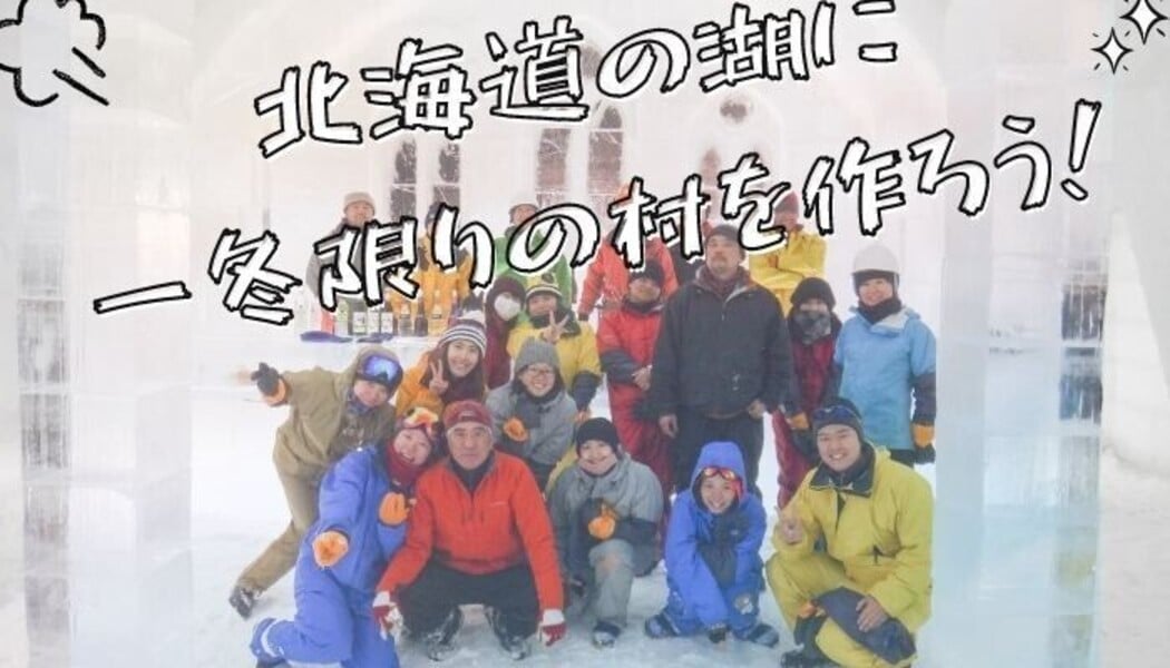 北海道の湖に、一冬限りの幻の村を作ろう! 雪と氷を使った建物を建設したり、イベント運営のお手伝いをすることで、40年の歴史を誇る幻の村づくりに参加できます。