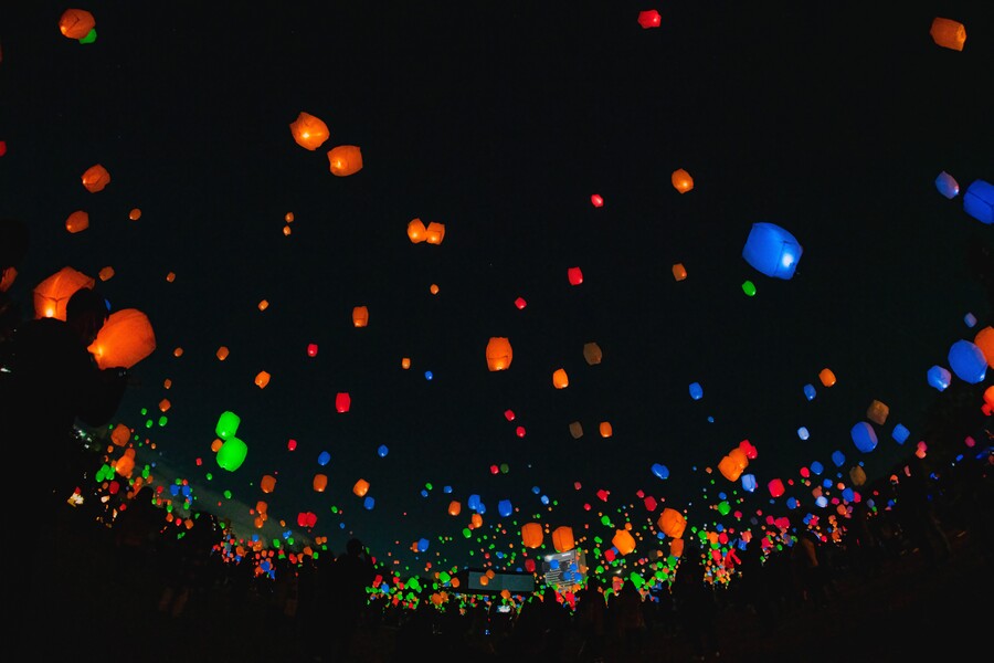 2日間で約6000個のLEDカラフルスカイランタンをリリース。