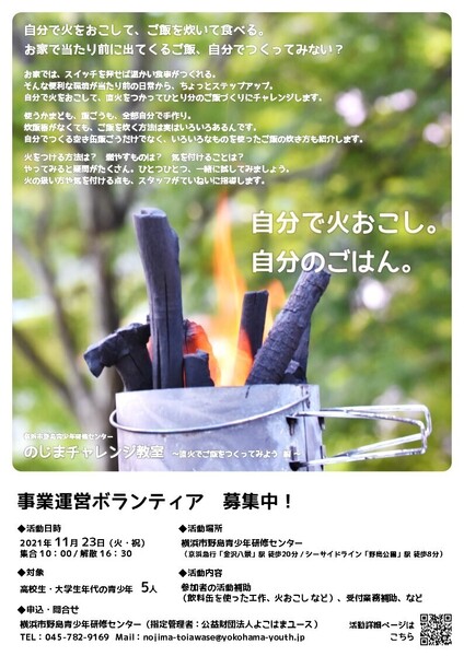 - 「日帰り!小学生と一緒に直火でごはんづくり!ー高校生~大学生世代ボラ大募集!!」