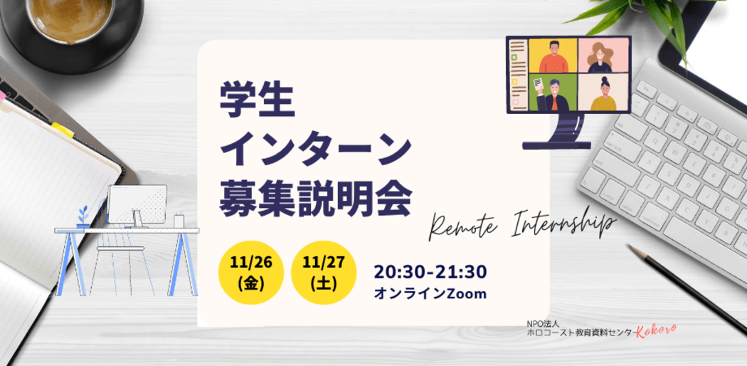 ホロコーストの歴史を教材とした人権・平和教育NPOでインターンをしてみませんか。まずは説明会にぜひ!