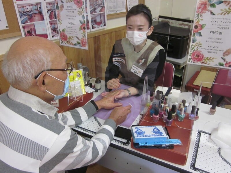 高齢者施設や高齢者サロンなどへ訪問し、ハンドトリートメントやネイルケアを行うボランティアです。資格がない方もサポート参加していただけます。