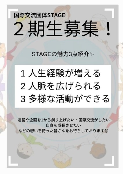 STAGEは国際交流がしたい!自身を成長させたいという皆さんをお待ちしています!