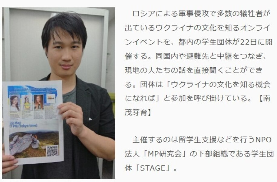 こんにちは!国際交流団体STAGE代表の竹内です。