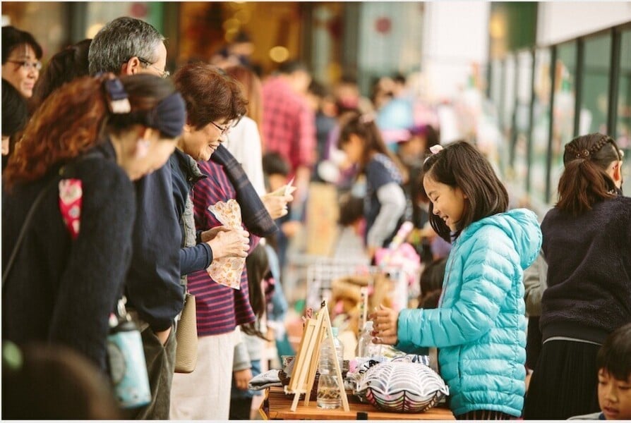 こどもが自分でお店を開いてお商売をしたり、用意したオシゴトで働いてお給料をもらったり、買い物を楽しめるキャリア教育のイベントで、こどもたちは、働く体験を通じて、働くことの面白さや苦労を学んでいます。イベントで使われるのは、地域通貨「おむすび通貨」。会場内のこどもの開いた店だけでなく、地域のパン屋さんやケーキ屋さんなど中小事業者さんで使えるようになっていて、イベントを通じて地域を元気にすることにも貢献しています。