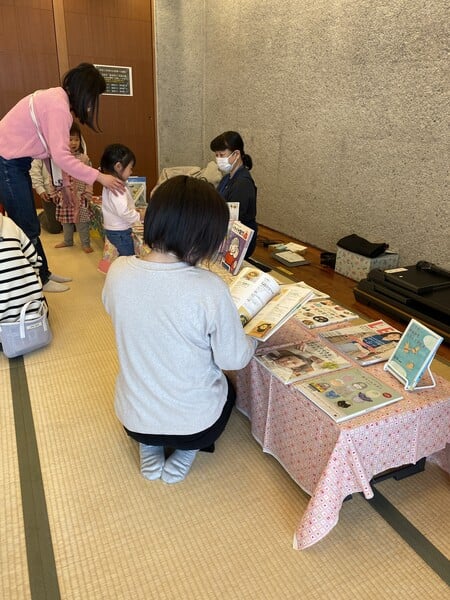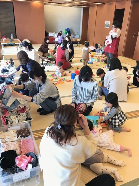 由利本荘市中央図書館のご協力を得て、移動図書館や読み聞かせ団体による読み聞かせタイムの実施。着られなくなった衣類を交換する「お下がりコーナー」も毎回開催する。