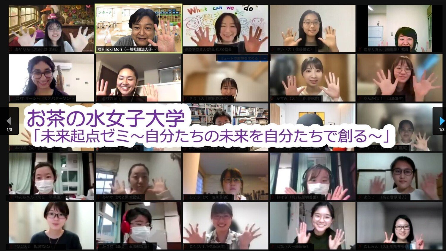 昨年度につづき、お茶の水女子大学 全学「未来起点ゼミ ~自分たちの未来を自分たちで創る~ コロナ禍、こんな時期だからこそ未来の自分たちと子どもたちのためにできること」にて、代表理事の森が講義を実施いたしました。