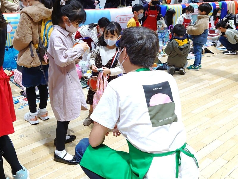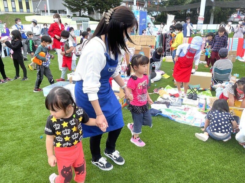 小さなお子様と手を繋いで一緒に会場内をまわりお買い物サポートをしたり、店長さんと一緒にお客さんへの声掛けを行ったり、など子ども達の活動の直接的なサポートをお願いします。