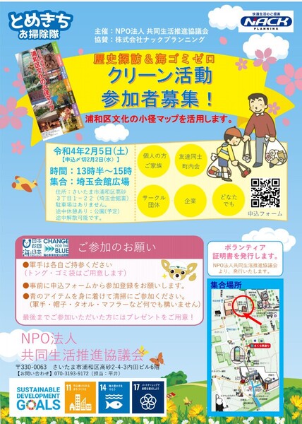 「海と日本プロジェクト」の一環で開催する「とめきちお掃除隊」のクリーン活動。「浦和区文化の小径マップ」を活用し、歴史探訪&海ゴミゼロをテーマにルートを計画します!2/5(土)さいたま市浦和区で開催。