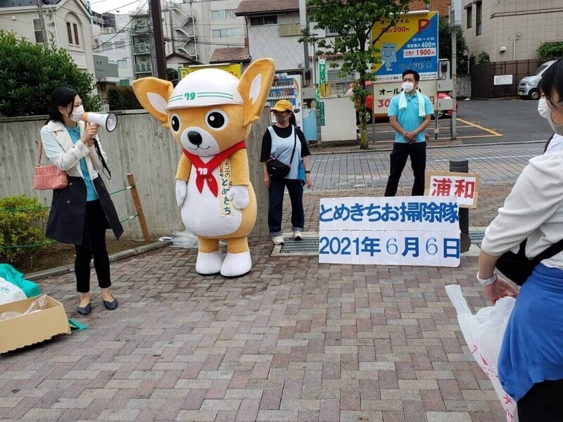 「とめきちお掃除隊」は、海と日本プロジェクトの一環として、犬の大工さん「とめきち」がお掃除隊隊長となり、NPO法人・企業・地域団体が協働で、多世代のボランティアとともに、戸田市で荒川土手の清掃活動、さいたま市浦和区では文化の小径マップを活用し、街巡りしながら清掃します。地域のコミュニティを繋げ、街の魅力を発信しながら、清掃活動を実施することで、街づくりに貢献することをめざすプロジェクトです。