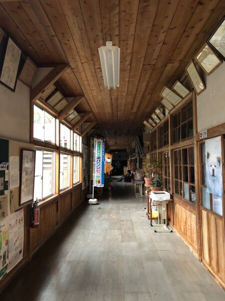 廃校を利用した白神自然学校内の畳部屋。寝袋必要。