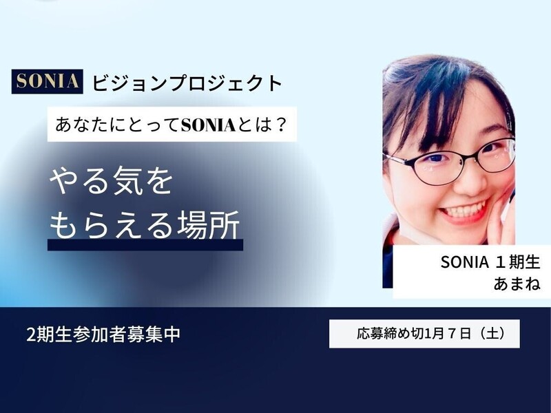 SONIAのおかげで刺激のある生活を送れたし、メンバーと話をする中でありのままの自分に自信を持てました!SONIAには温かく、意欲的なメンバーでいっぱいです!同世代の刺激がほしい人、自分に自信を持ちたい人、普段抱えている思いをぶつけるところがなく困っている人、ぜひSONIAにご参加ください!