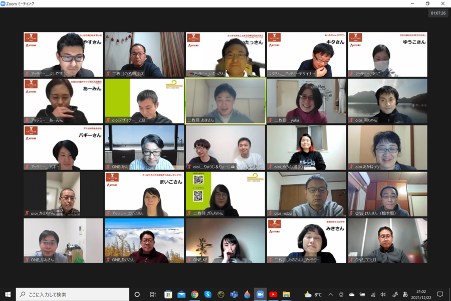 参加者の声「オンラインで、真面目な議論の中にも「明るく」「楽しく」進めることができました。」「毎回のミーティングが楽しみでした」「中々前に進まず苦しい時期もありましたが、その山を越え終了した時には、達成感でいっぱいでした」