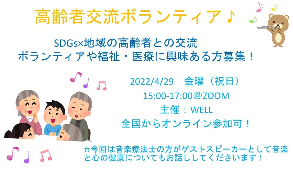 - 高齢者との交流ボランティア SDGs×地域の高齢者との交流 (健康・福祉・医療)
