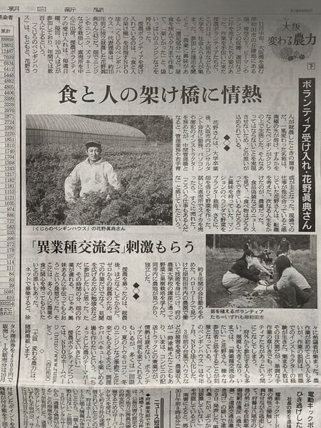 大手新聞社に紹介された、食べ物について考える、異業種交流の多い農業ボランティア