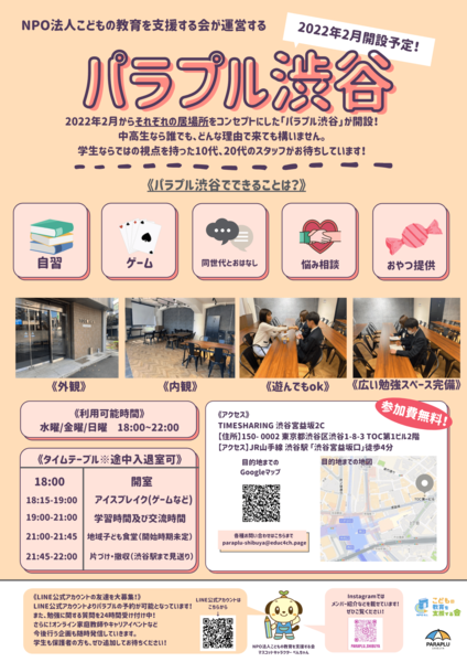 子どもたちのための、学校と家以外の第三の居場所づくり/ボランティア証明書発行可能/年代問わず歓迎!
