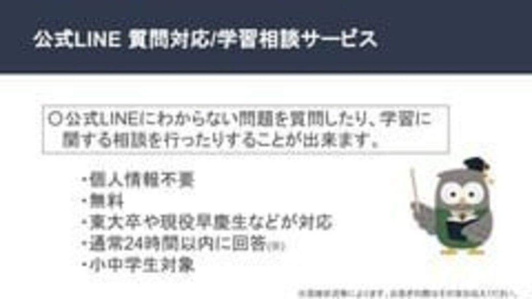 | 新型コロナウイルスの影響の長期化により自宅学習が増加したことを受けて、いつでも弊法人のLINE公式アカウントに質問や学習相談を行えるシステムを用意しました。機会格差是正の目的も兼ねるため、新型コロナウイルスの流行終息後も運用を継続します。 |