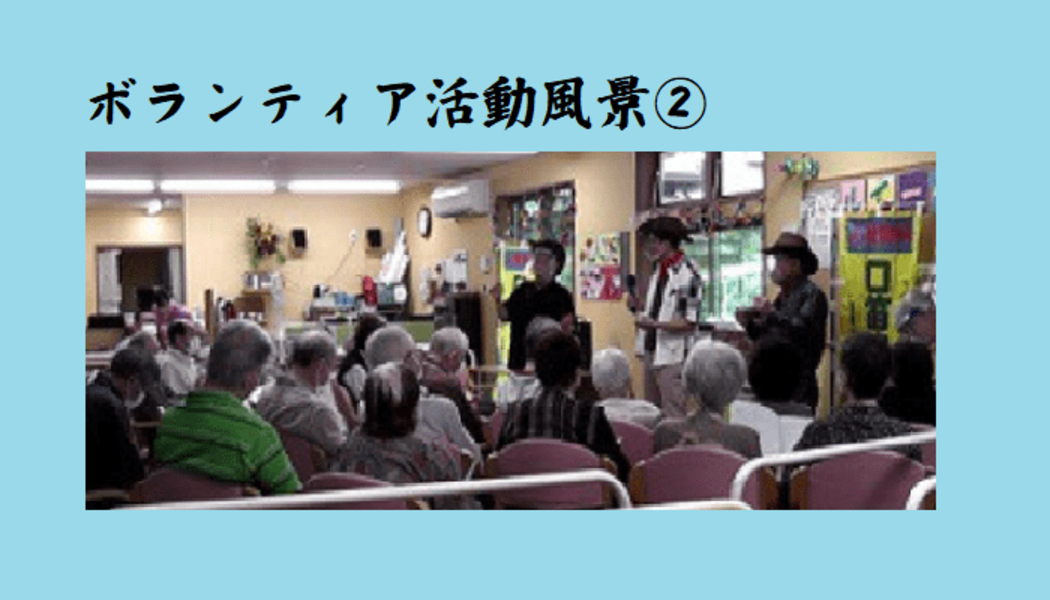 ・デイケアセンターにおいて、演奏に合わせて一緒に楽しく歌われる方の笑顔や、昔懐かしい昭和歌謡の演奏を聴いて手拍子をされながら喜んでいただいている姿を観るとやってよかったと思います。(ボランティア活動)