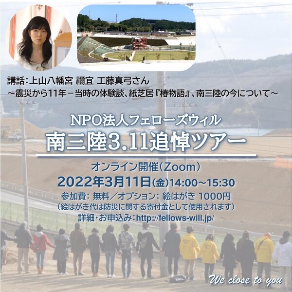 東日本大震災から11年、その時を現地と繋ぎ追悼を行い、参加者さんと共有します。