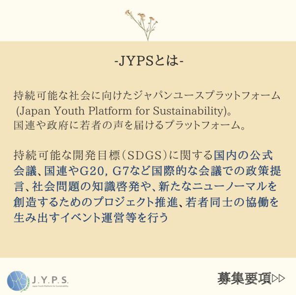- JYPS新規事務局員募集! 政策提言/SDGs/若者/国際会議/国連/国内会議