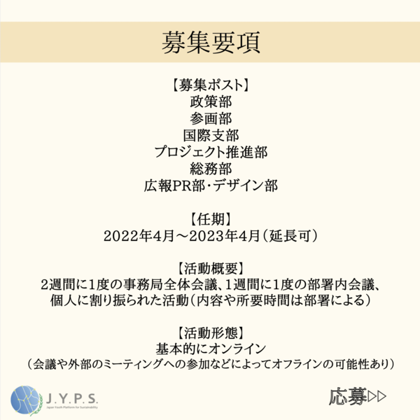Japan Youth Platform for Sustainability(JYPS)事務局の新メンバーを募集中。