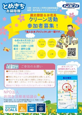 3/12土・4/3日☆千葉【運営ボランティア募集】とめきちお掃除隊(海と日本)