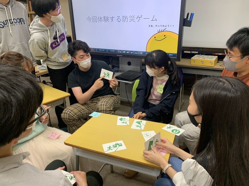 2023年度には、鳥取の高校生に対して防災ゲームを使った授業を行ったり、福祉ボランティアセンターで親子向けに防災グッズや防災ゲームで楽しく学ぶ防災教育を行ったりしました。