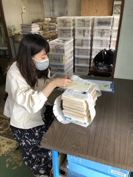 今回は昨年の4月にオープンした新しい民間図書館兼蔵書基地で、本の登録と排架を行います。