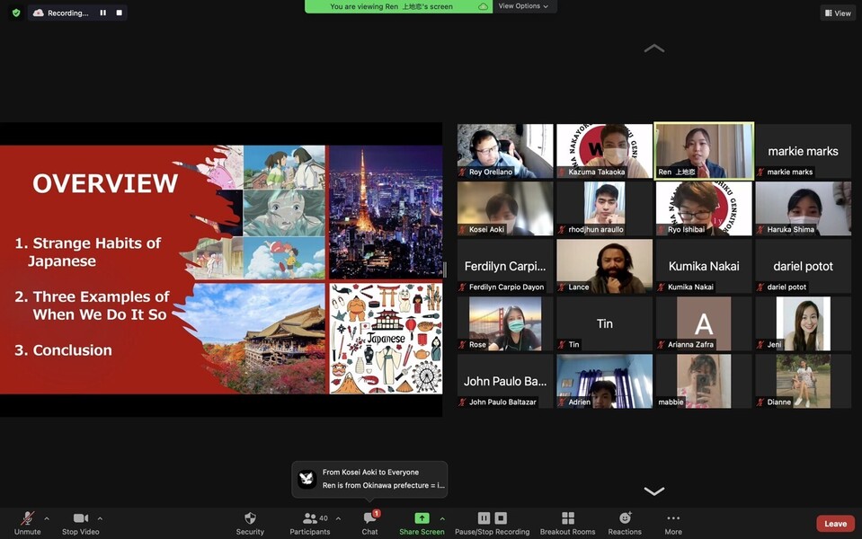 40-50人ほどの外国人の方々に向けて、英語で日本文化をプレゼンしてみませんか。お題はあなたの趣味でも地元についてでもなんでもOK!! 英語の練習として、そして多くの外国人の方々と繋がりましょう!!