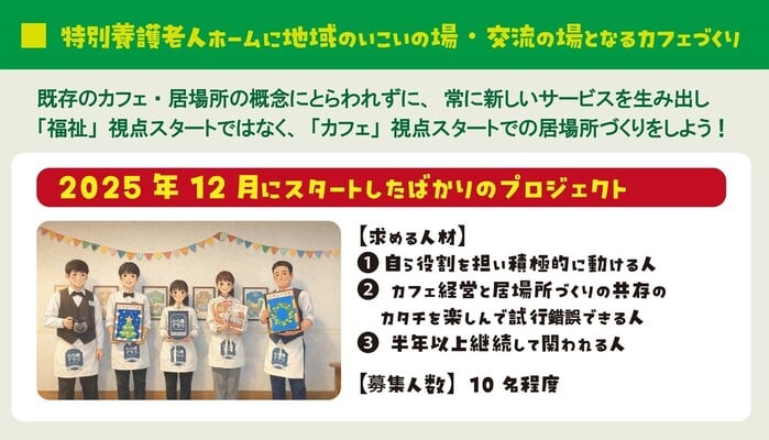- 【学生主体カフェ運営】特別養護老人ホームに多世代・地域交流の居場所作り★