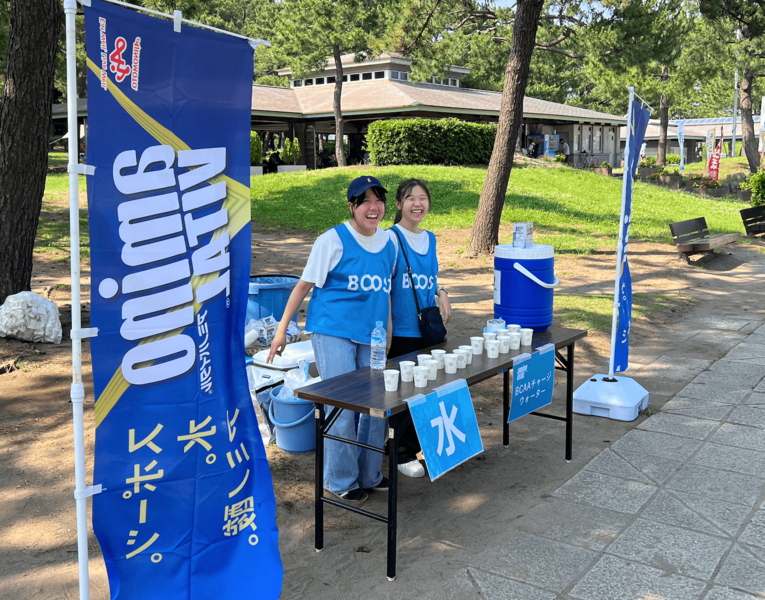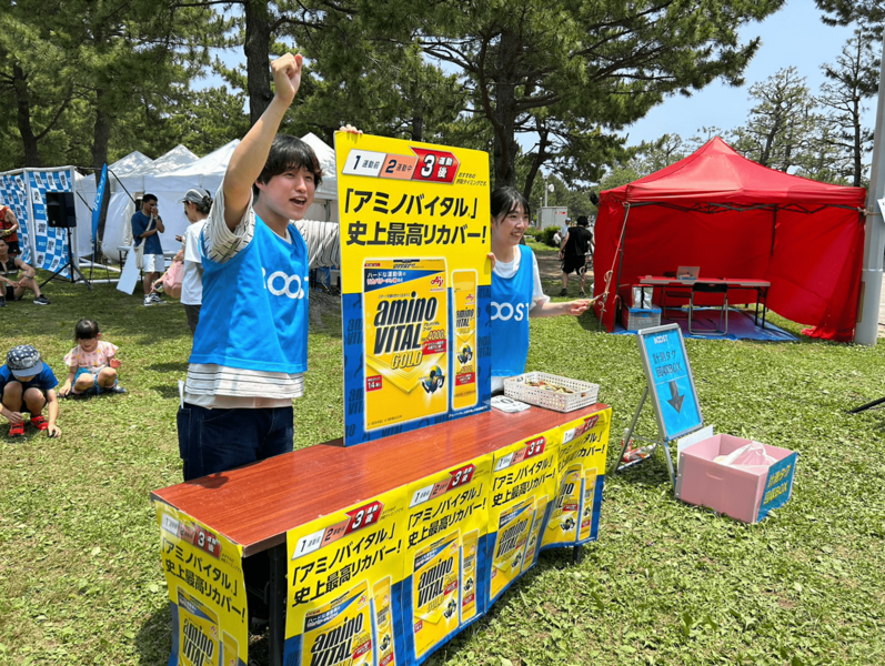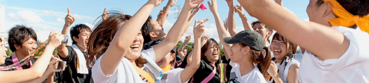 応援隊のリーダーと一緒に「ファイト!」「ナイスラン!」などの声援を送りましょう!
