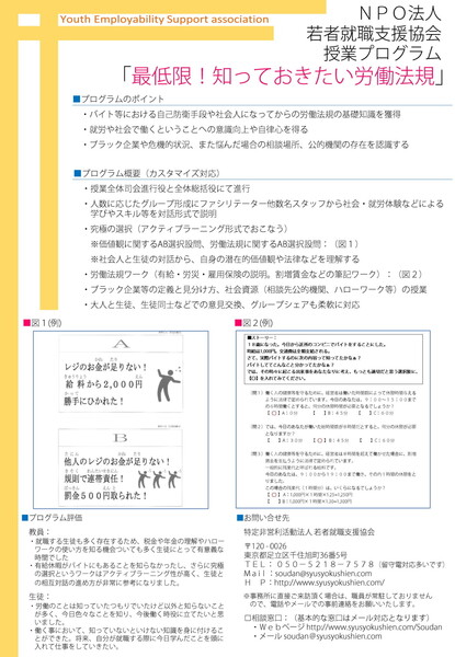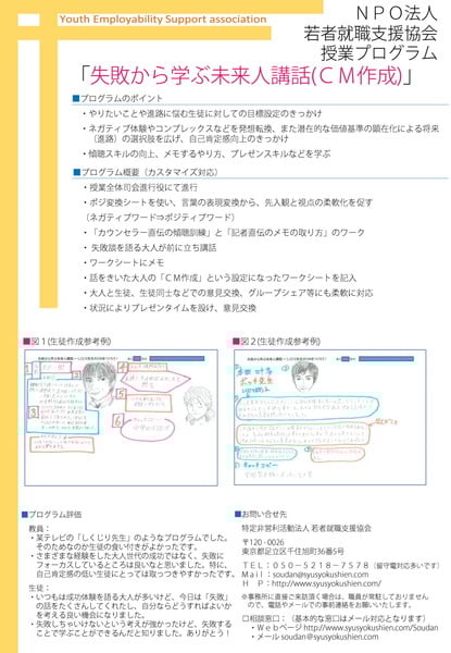 無料 ・高校などのキャリア教育現場への参加時は交通費として一律1000円を支給  |