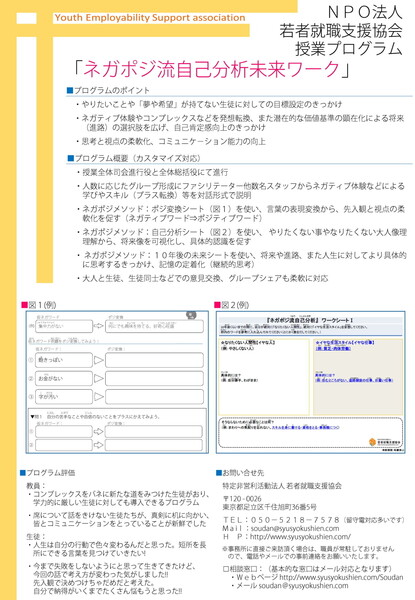 そんな彼ですが、不幸をプラスにする思考法「ネガポジメソッド」編み出し、カウンセリングや研修に応用する中で、2013年から都立高校にてキャリア教育プログラムとして導入されました。