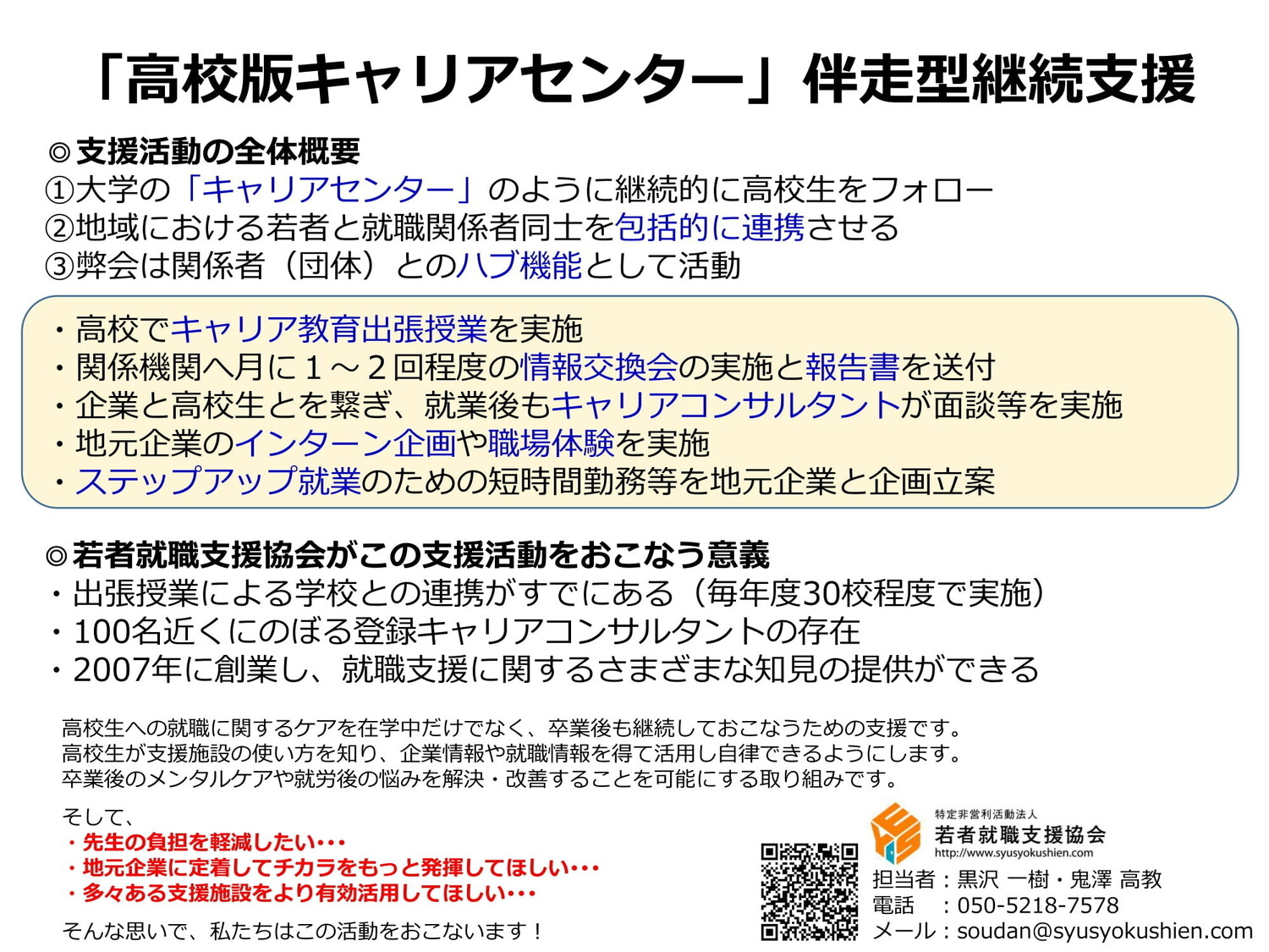 大学のキャリアセンター機能の高校版を弊会がおこないます。