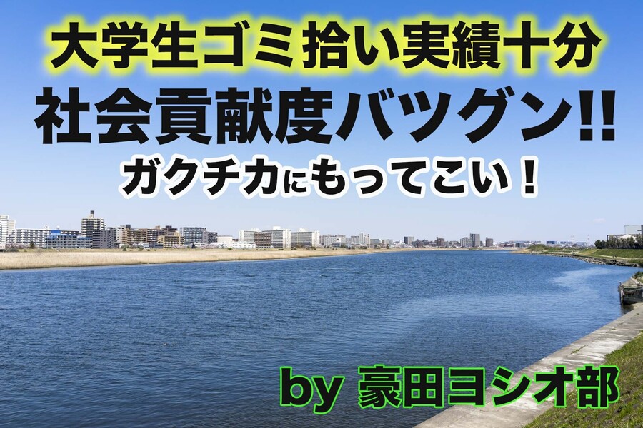 「大学生限定 ゴミ拾いイベント in神奈川県」を5月22日(日)に、神奈川県川崎市の多摩川河川敷で開催します! 豪田ヨシオ部が神奈川県(多摩川)でゴミ拾いイベントを開催するのは、初めてになります!