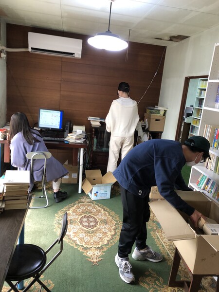 今回は昨年の4月にオープンした新しい民間図書館兼蔵書基地で、本の登録と排架を行います。