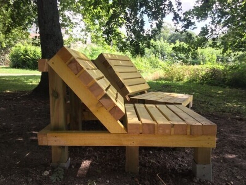 都会の真ん中にリラックスできる空間と庭を作りたい、という住民の希望により、高校前の緑地にパーゴラや木製家具を作る。木製ベンチ・チェア制作、パーゴラの建設。ロワール渓谷の文化的な生活に触れることができる