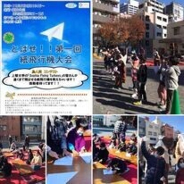 - 「紙飛行機大会作戦」…上智大学さんと「キレイな地球を」という気持ちを乗せて飛ばす