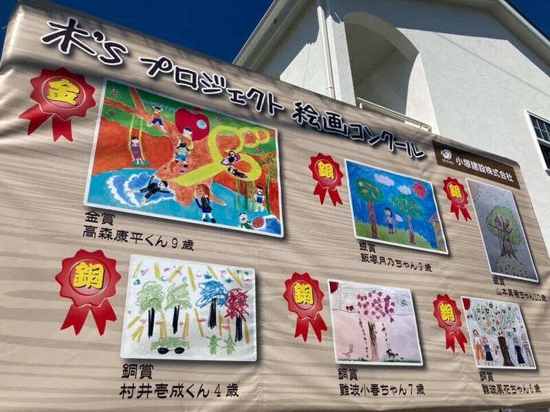 木をテーマに、こどもに絵を描いて頂いて建築現場の現場シートに飾る木っず絵画コンクールの開催。