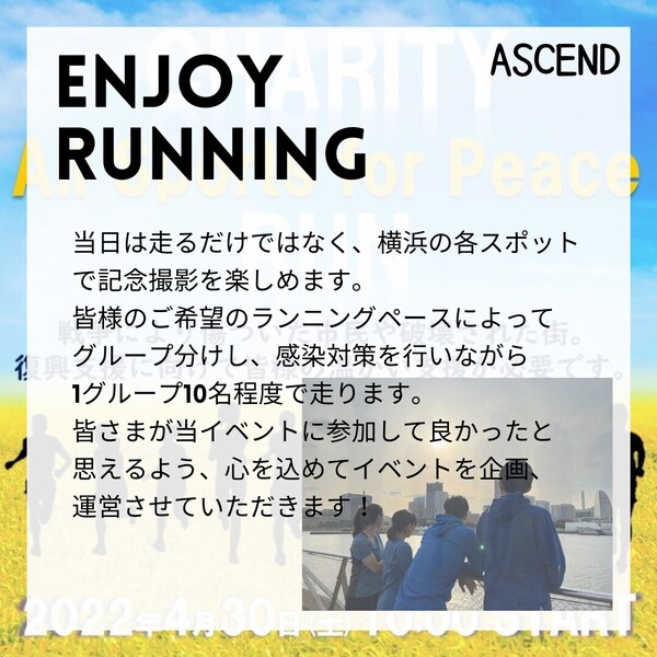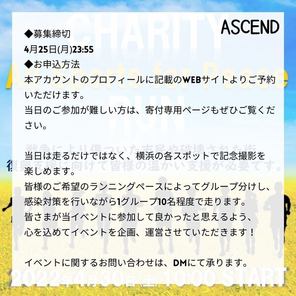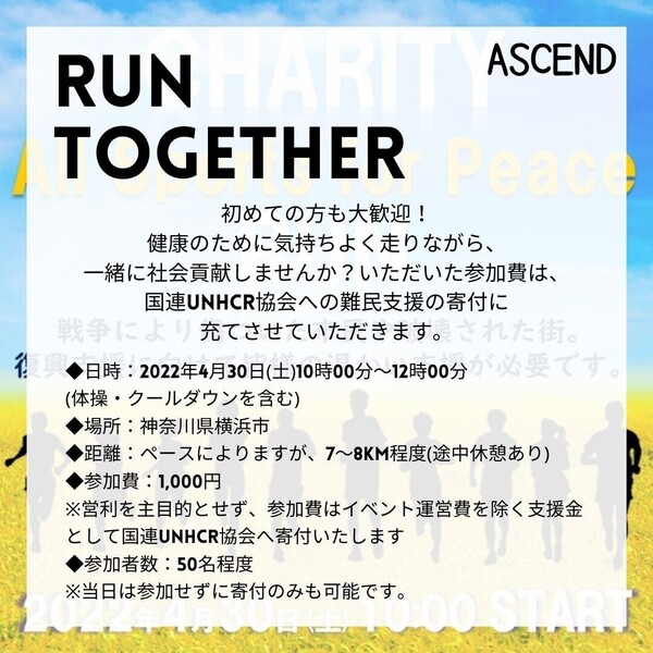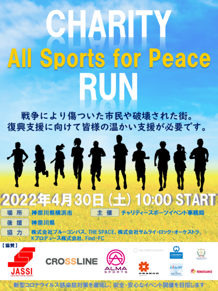 チャリティーラン All Sports for Peace は本団体設立後(2022年3月17日設立)初開催のチャリティーイベントとなります!
