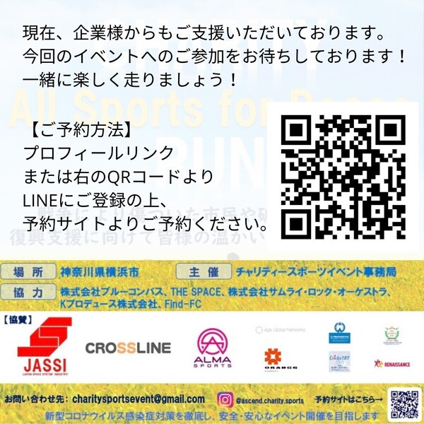 予約締切まであと5日!チャリティーラン All Sports for Peace