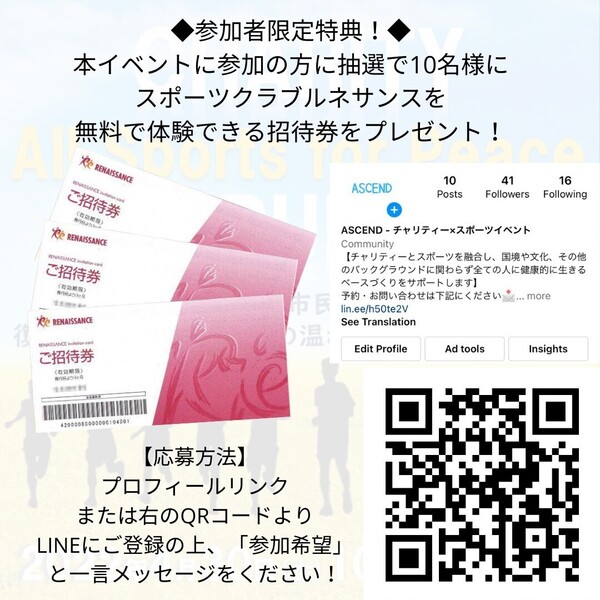 - 予約締切まであと5日!チャリティーラン All Sports for Peace
